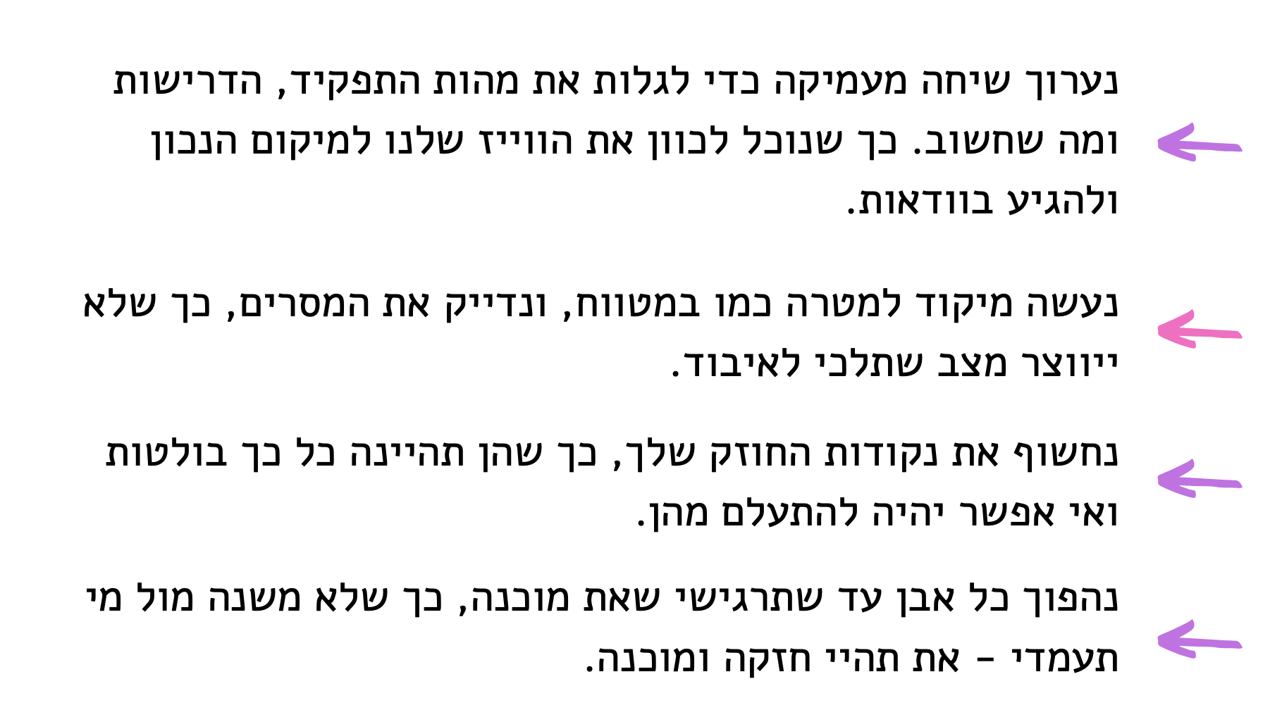 ויביא אותך לתפקיד הבא. לא סיסמאות, לא מנטורינג, אלא ליווי תכל״ס צעד אחרי צעד 👣.