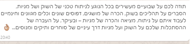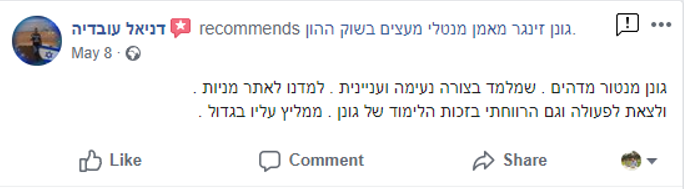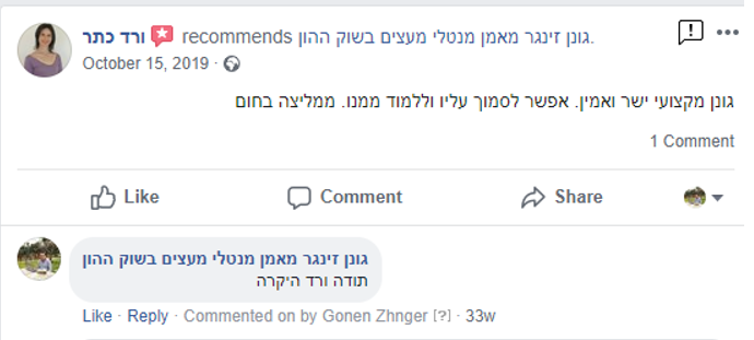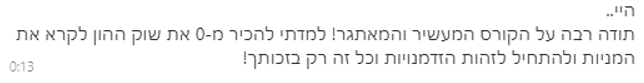 על בשרי למדתי, בשביל להצליח בשוק ההון צריך שמישהו מנושא יהיה צמוד אליך, אחרת מתחילים לעושת הרבה שטויות, ללכת על מניות לא רווחיות, ובסוף מפסידים הרבה מאוד כסף...