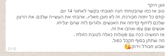 ליווי צמוד של 45 ימים