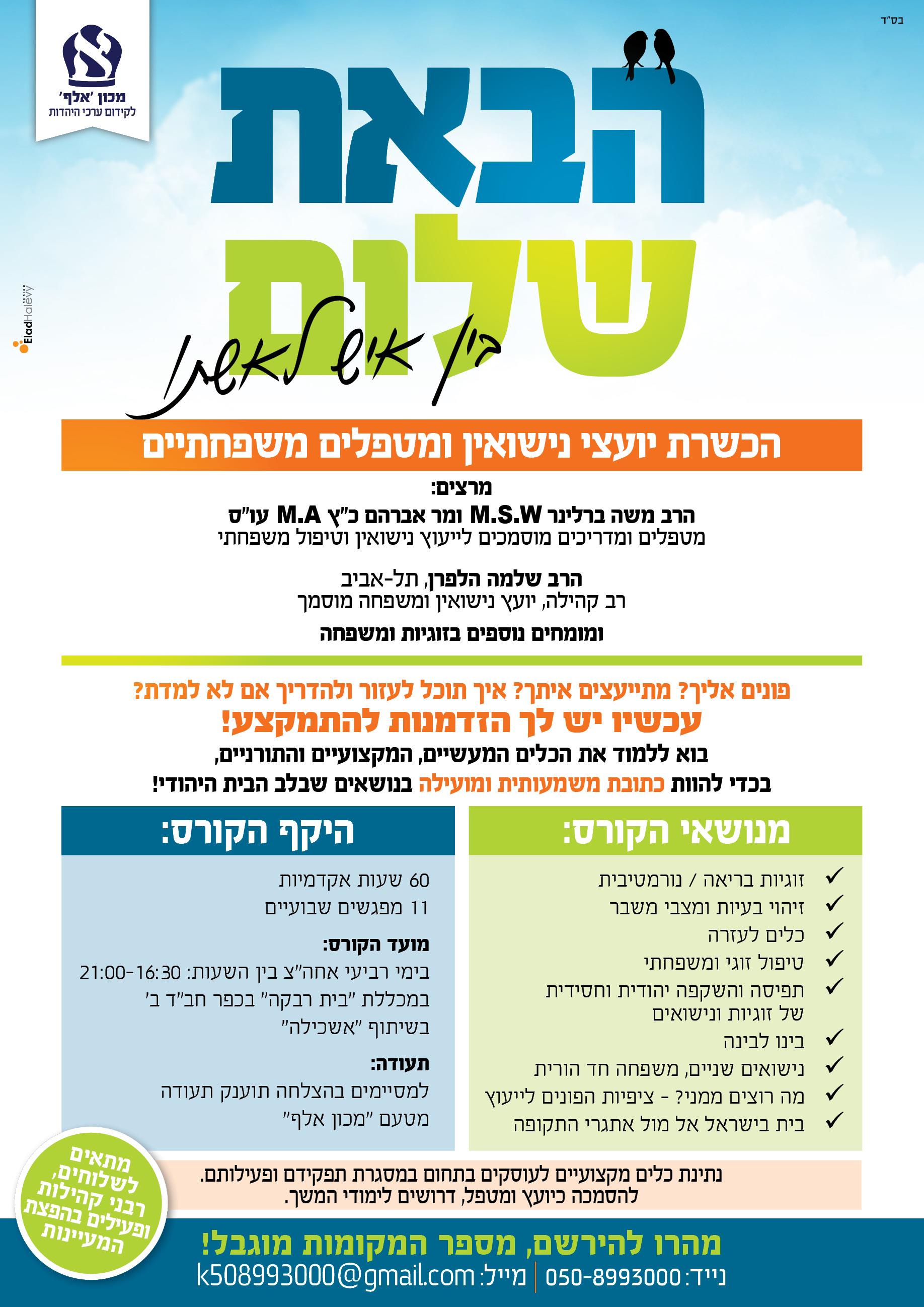פונים אליך? מתייעצים אתך בענייני הבית היהודי? רוצה לקבל כלים מעשיים ליישום בביתך?